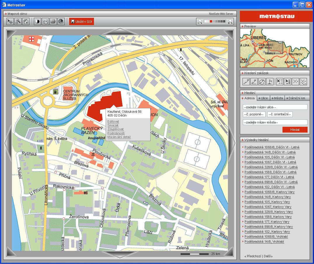 Ukázka mapového rozhraní aplikace SOI.